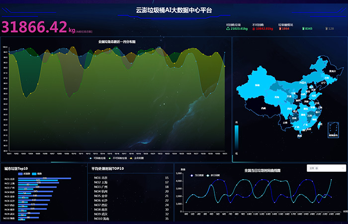 ·城市垃圾桶分布大數據分析視圖、城鄉區域視圖