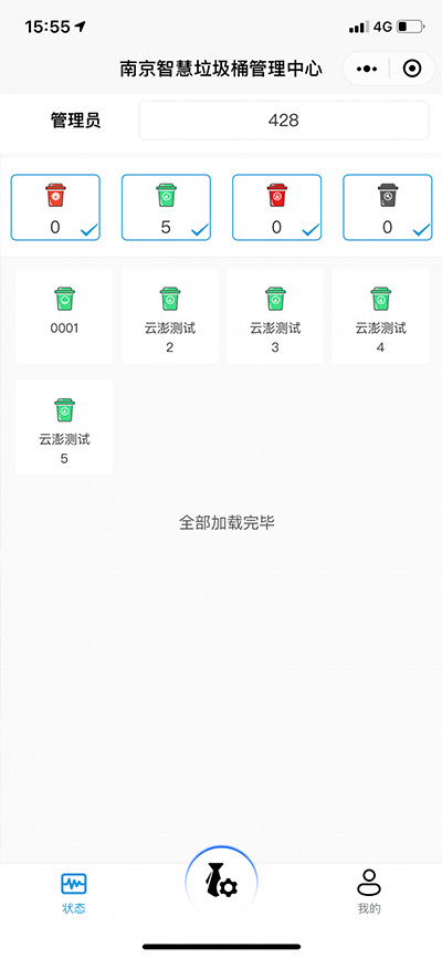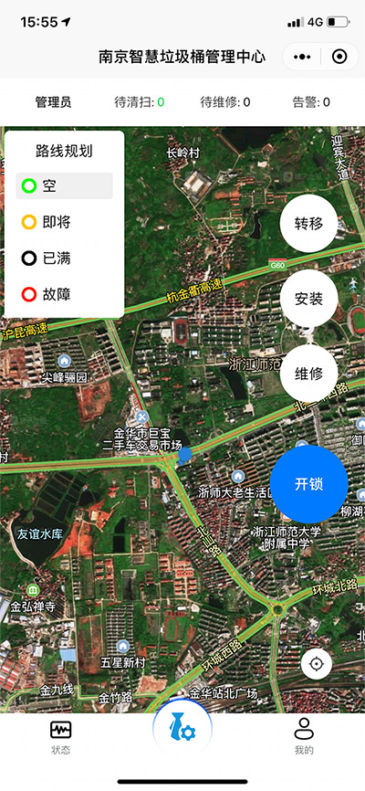 另外提供APP端根據運維人員的權限設置也可以管理和監控相應的垃圾桶。