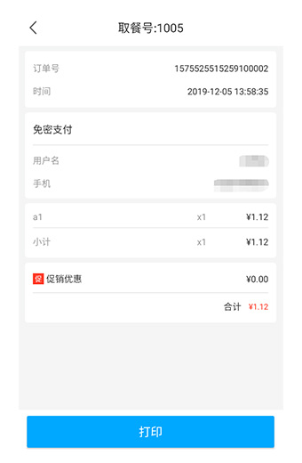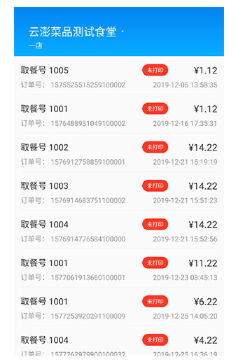 管理員在收到訂餐信息后,在手持終端打印小票。提前給就餐者準備。